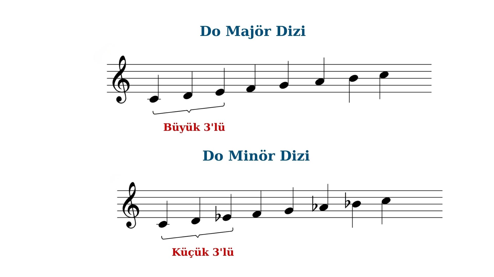 - Majör dizilerde 1-3.ses arası büyük üçlüdür. (majör 3rd) (do-mi)