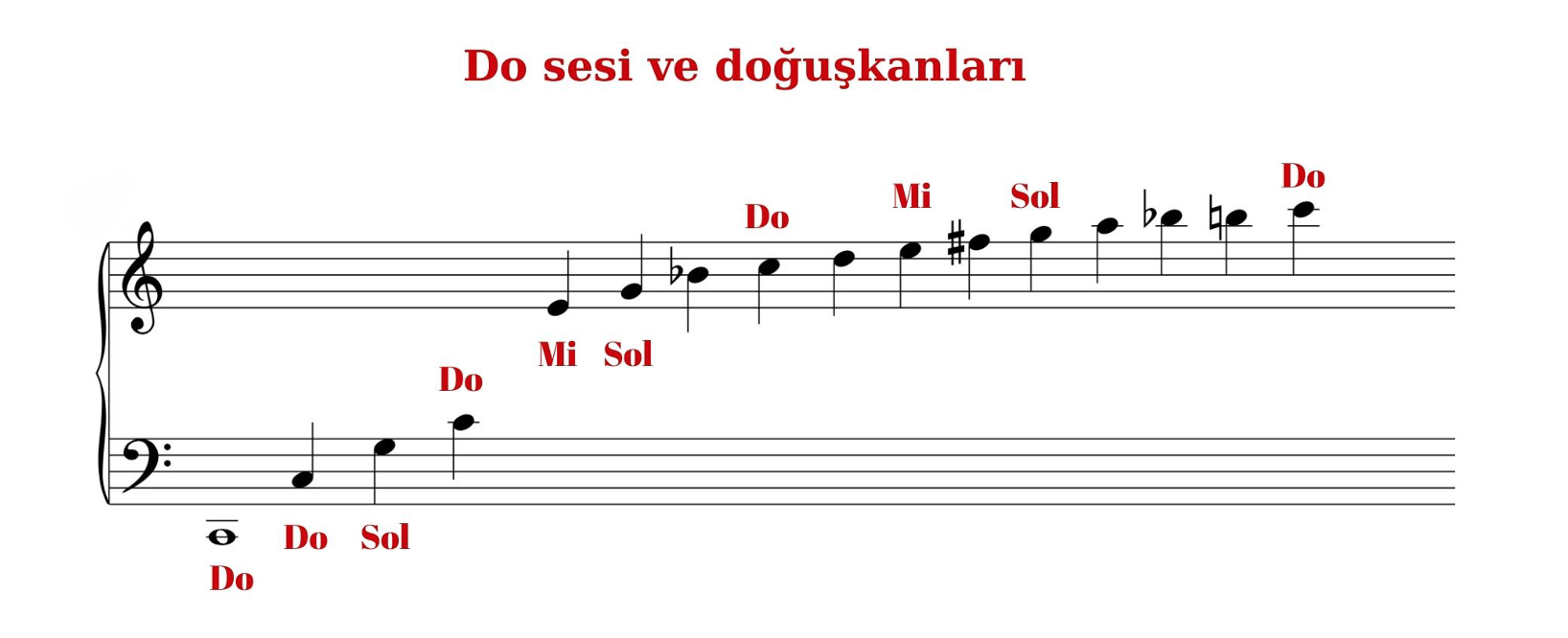 Örneğin biz bir “do” notasını dinlerken aynı anda (çok daha hafif bir şekilde) onun üzerinde titreşen şu notaları da fark etmeden duyarız: Do (bir oktav tiz), Sol, Bir sonraki Do, Mi, Sol… vb. İşte bu armonik serinin en belirgin ilk birkaç notasını (Do, Mi, Sol) bir araya getirirsek, ne elde ederiz? Bir Do Majör akoru!